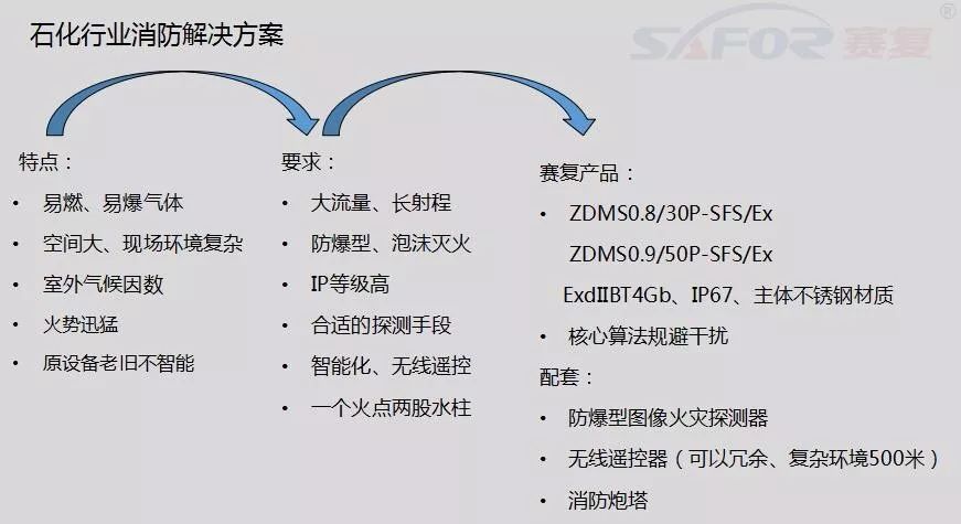 賽復針對化工行業(yè)環(huán)境易燃易爆、空間高大、現(xiàn)場環(huán)境復雜等特點,提供了專業(yè)的智能化解決方案。
